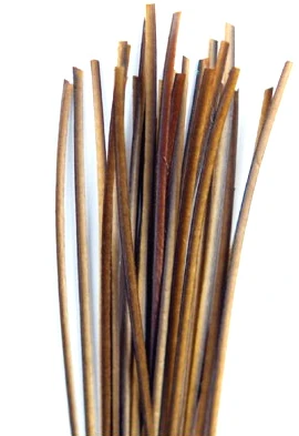 The quill comes from peacock eyes and is hand stripped, which eliminates the problems of cracking if bleached or chemically stripped.