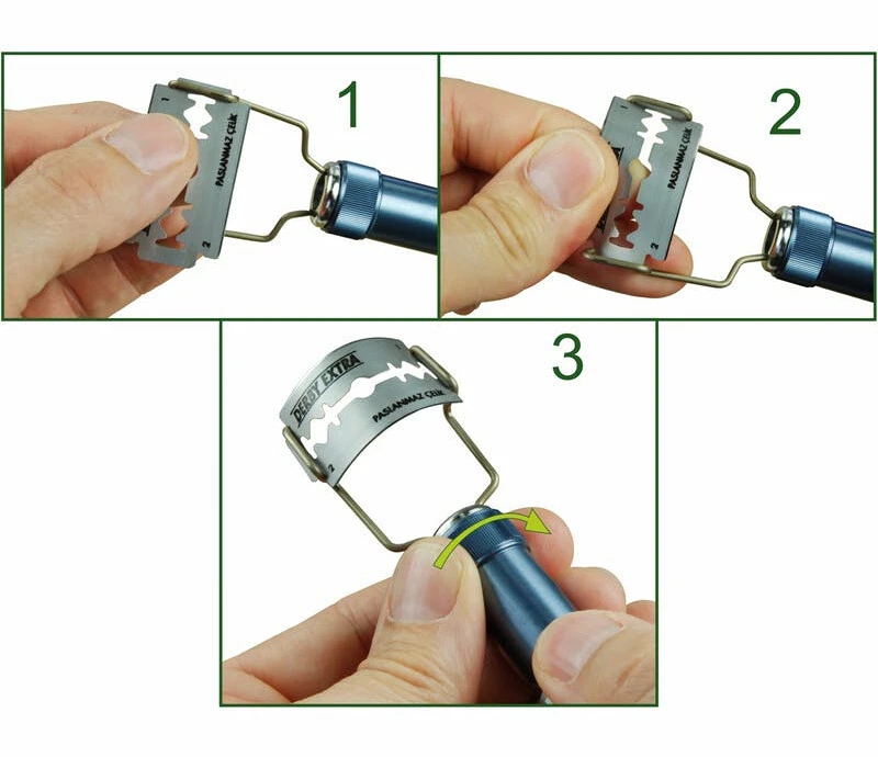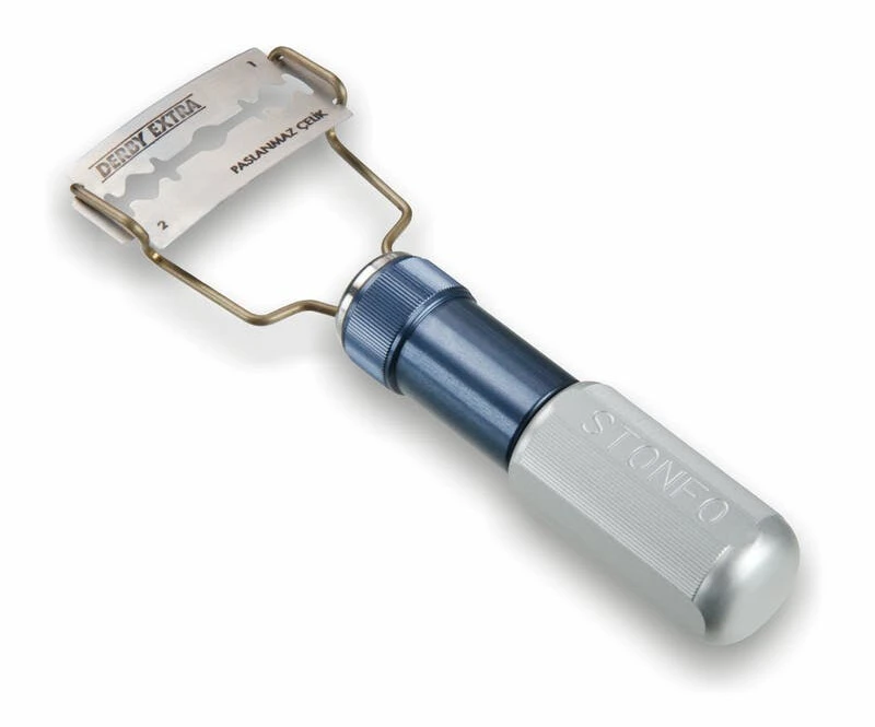 Special razor designed and made for fly and streamers tyers, perfect for the creation of deer hair heads. The rotation of the ring nut allows to flex the blade to the desired angle to have a more uniform hair cut. Supplied complete with double edge razor blades.